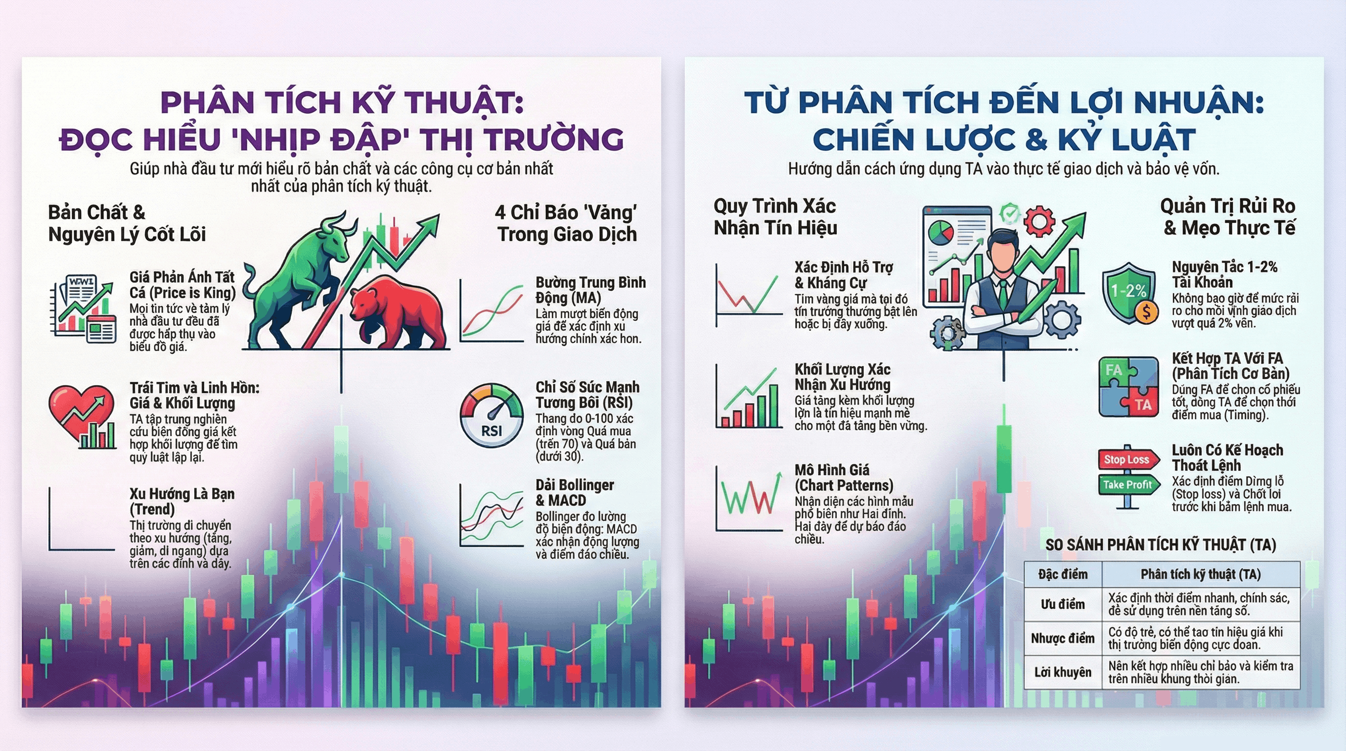 This article provides a detailed explanation of Technical Analysis (TA), including fundamental theory, popular tools (moving averages, RSI, MACD, Bollinger Bands), price patterns (trendlines, support/resistance, chart patterns), volume indicators, risk management through stop-loss orders and position size, and how to combine TA with FA to optimize trading strategies. This article is suitable for short-term investors, traders, and anyone wanting a deeper understanding of price behavior and market sentiment reflected in charts.
